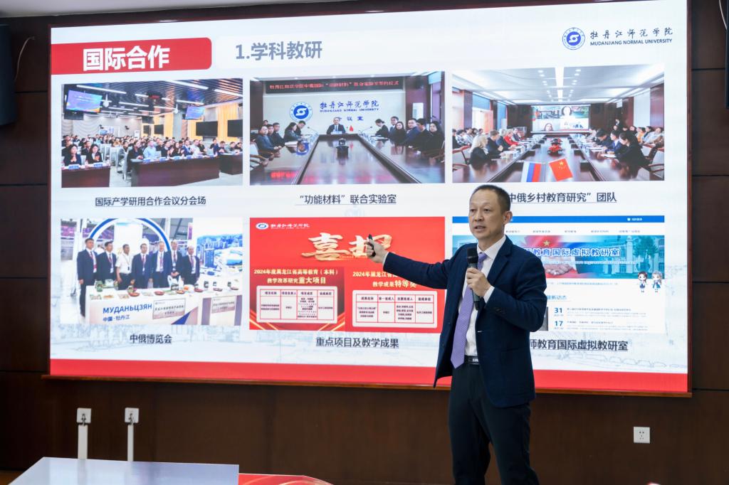 省教育厅副厅长、党组成员曹叠峰在会上讲话。他表示,要加快推进学校教育国际化进程,积极实施向北开放发展战略,充分发挥汉语国际教育领域学科优势,持续优化留学生招生与培养机制,为人才培养质量提供坚实保障。大力推进教育数字化转型,构建多元化的数字化应用场景,有效提升教育教学效能,更为服务国家对外开放战略作出积极贡献。