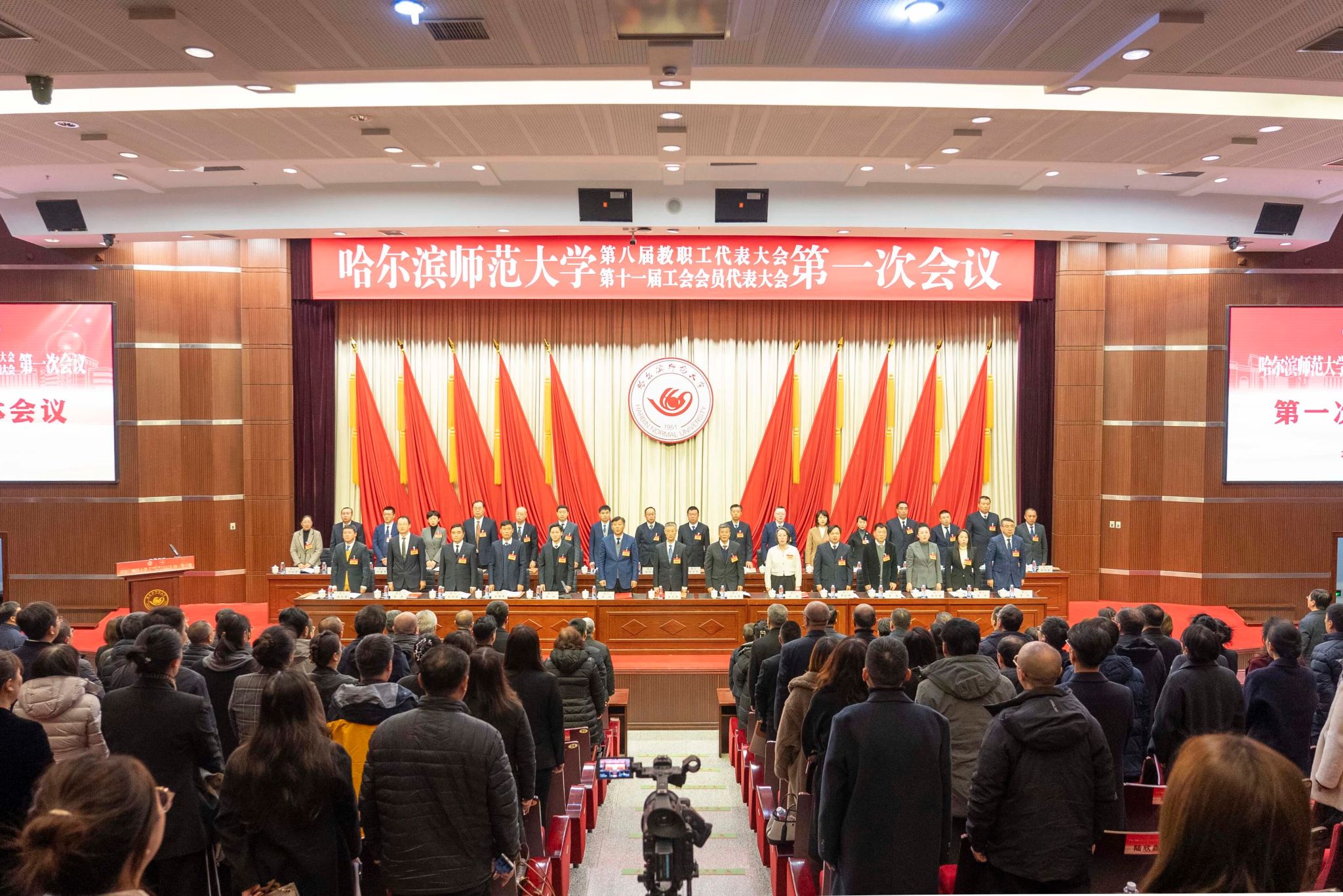 1月22日上午,哈尔滨师范大学第八届教职工代表大会、第十一届工会会员代表大会在科学会堂开幕。